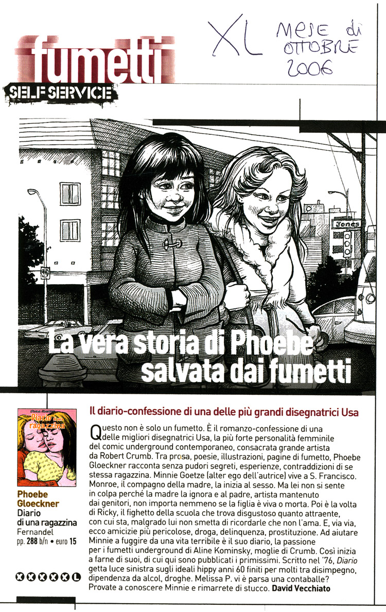 «La vera storia di Phoebe salvata dai fumetti» (David Vecchiato, Repubblica XL, ottobre 2006).