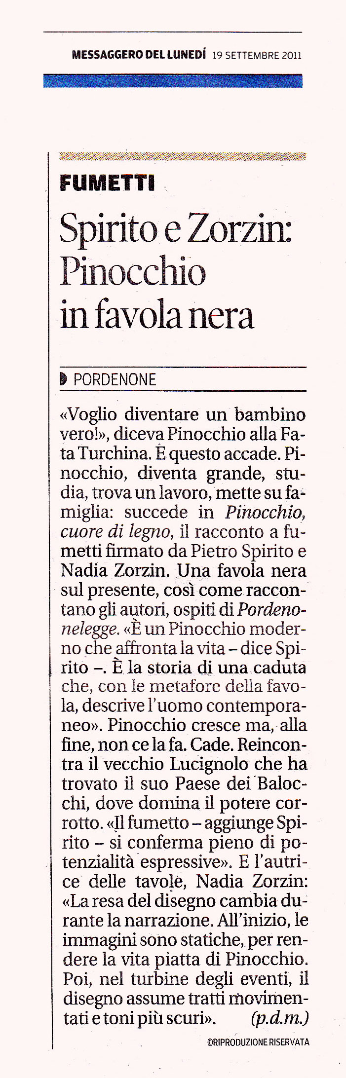 Nadia Zorzin, graphic designer e illustratrice, triestina di origine, vive e lavora nella campagna udinese. Per anni ha raccontato di sé su pagine di agenda che venivano poi scansite e inserite in un blog in cui si firmava Solo_in_linea, per il tratto continuo che caratterizzava i suoi disegni. Una serie di queste vignette è diventata il libro-diario di una maternità, ma-mma (Untitl.ed, 2008).