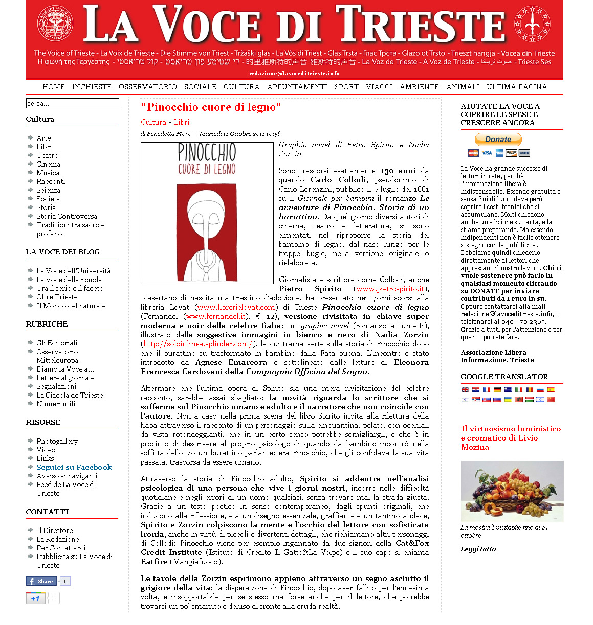 Pietro Spirito, giornalista e scrittore vive a lavora Trieste. Ha pubblicato saggi, racconti e romanzi. Tra gli ultimi Le indemoniate di Verzegnis (Guanda, 2000), Speravamo di più (Guanda, 2003, finalista al Premio Strega), Un corpo sul fondo (Guanda, 2007, dal quale il regista Fredo Valla ha tratto il film “Medusa. Storie di uomini sul fondo”), Il bene che resta (Santi Quaranta, 2009), L’antenato sotto il mare (Guanda, 2010).
