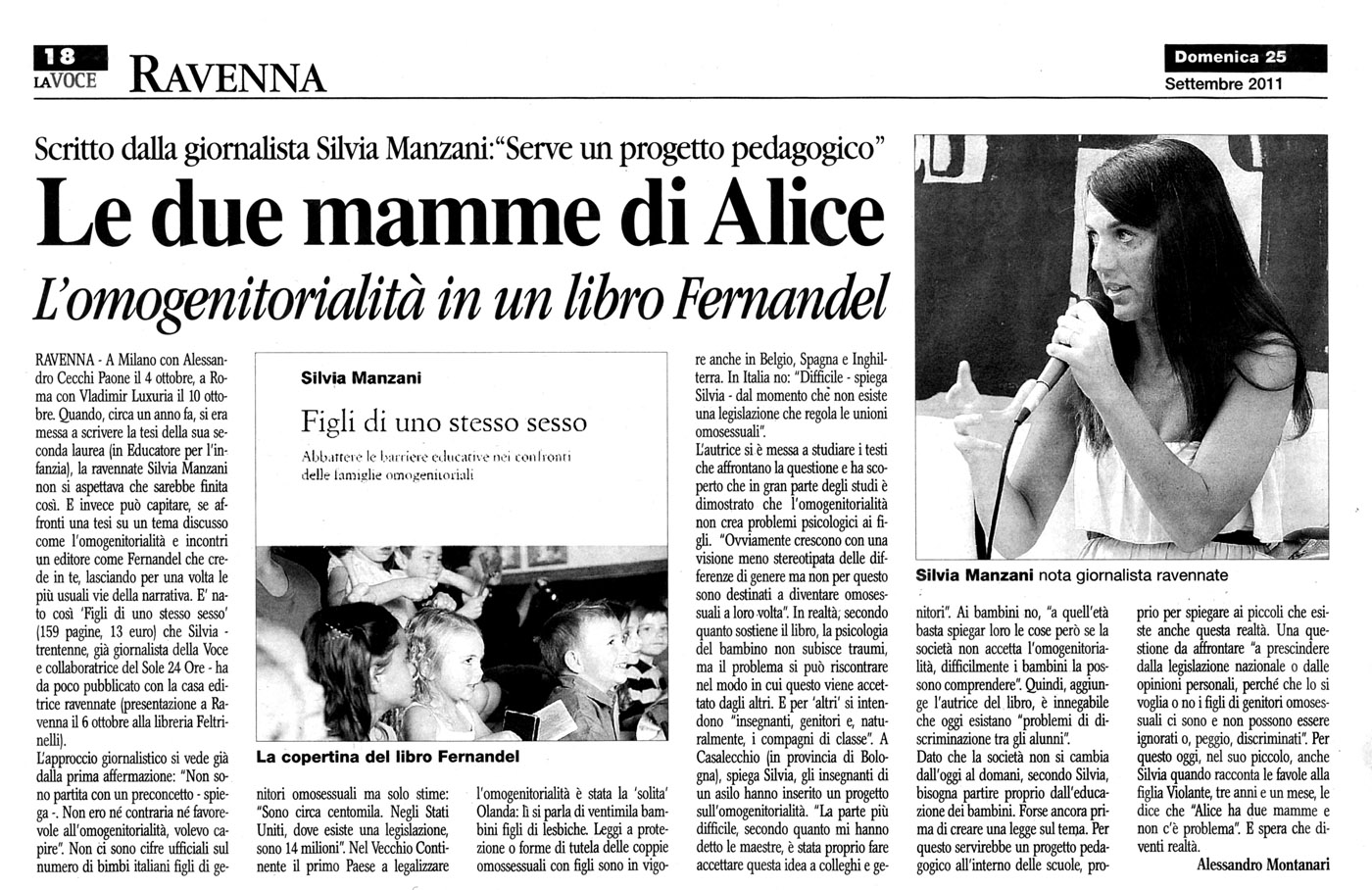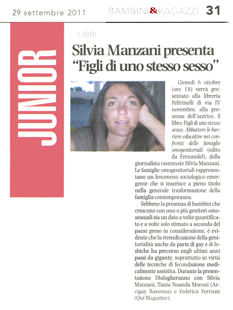 «Diciamo ai bimbi che esistono famiglie diverse» (Federica Angelini, «Ravenna & Dintorni», 17 novembre 2011)