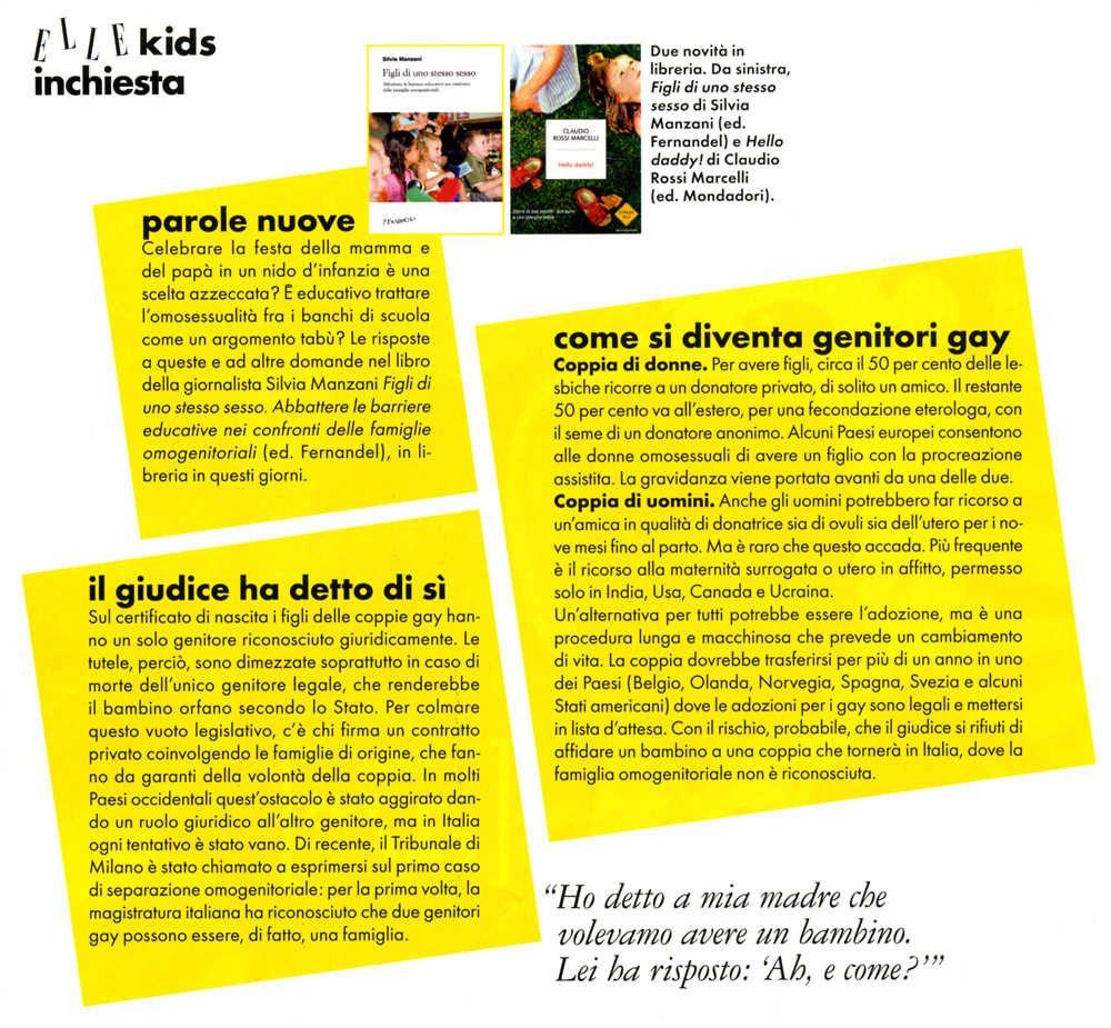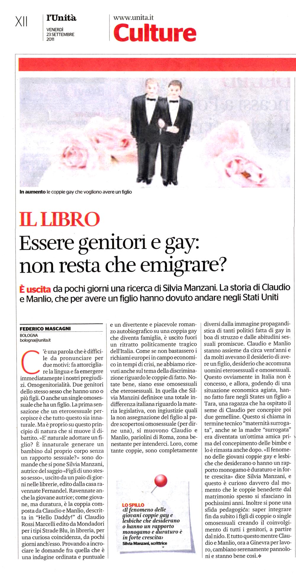 «Essere genitori e gay: non resta che emigrare?» (Federico Mascagni, «l'Unità», 23 settembre 2011)